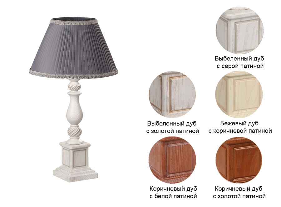 Массив дуба, патрон Е27, рекомендуемый абажур 13-35-19. Абажур в комплект входит.