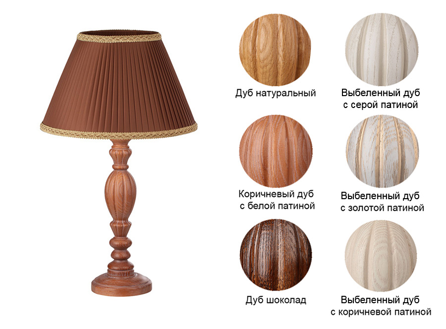 Лампа настольная изготовлена из массива дуба, патрон Е27, рекомендуемый абажур 15-30-18. Комплектуется абажуром на выбор.