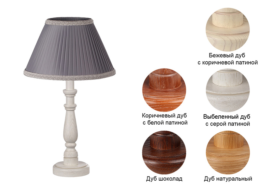 Лампа настольная изготовлена из массива дуба. Комплектуется абажуром на выбор, рекомендуемый абажур 12-26-15. Патрон Е27.