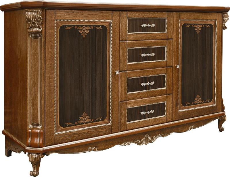 Тумба "Альба 14/1с" П 485.14/1с палисандр (с зол., с сер.) фабрики Пинскдрев в классическом стиле характерна массивность, основательность и пышность форм. Альба является классическим примером мебели из массива дуба. Она включает в себя мебель для