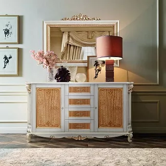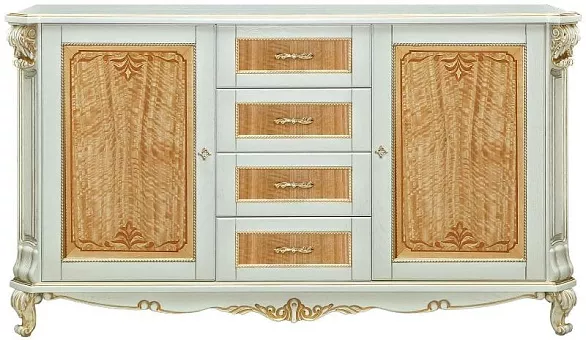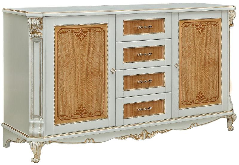 Тумба "Альба 14/1с" П 485.14/1с слоновая кость (с зол., с сер.) фабрики Пинскдрев в классическом стиле характерна массивность, основательность и пышность форм. Альба является классическим примером мебели из массива дуба. Она включает в себя мебель для