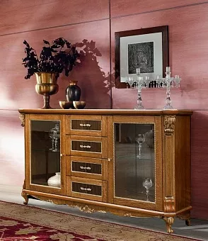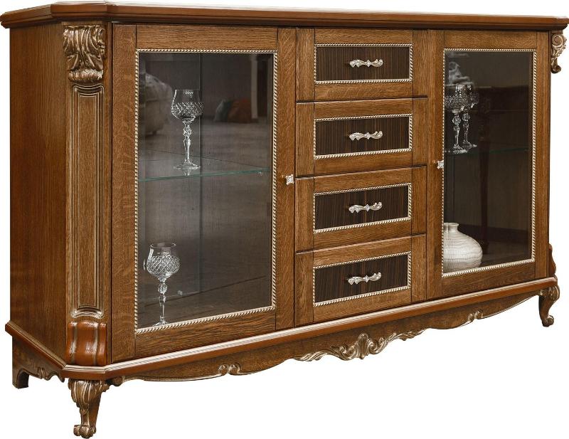Тумба "Альба 14с" П 485.14с палисандр (с зол., с сер.) фабрики Пинскдрев в классическом стиле характерна массивность, основательность и пышность форм. Альба является классическим примером мебели из массива дуба. Она включает в себя мебель для
