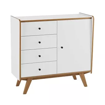 Тумба Винтаж 1 дверь 4 ящика белый лак/браун