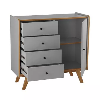 Тумба Винтаж 1 дверь 4 ящика серый лак/браун