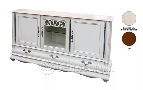 Отделка: варианты цвета — «орех» , «белая эмаль + патина тёмная», «венге+патина серебряная», лак – на водной основе. Вес изделия 121 кг.