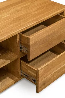 Серия изготовлена из массива дуба - это функциональная вещь со скандинавским дизайном, который отличается простотой и привлекательностью линий. Минималистичный дизайн, который идеально впишется в вашу гостиную, кабинет. Используется 100% массив дуба. Покрытие интерьерными маслами от компании Хенкель. 100% ЭКО отделка, масла не выделяют никаких токсичных частиц. Гарантия защиты и долговечности древесины, сохранение ее текстуры, внешнего вида и естественности. Каркас-массив дуб, фасад- массив дуб. Задняя стенка, донья ящиков - фанера, облиц. шпоном дуб.
