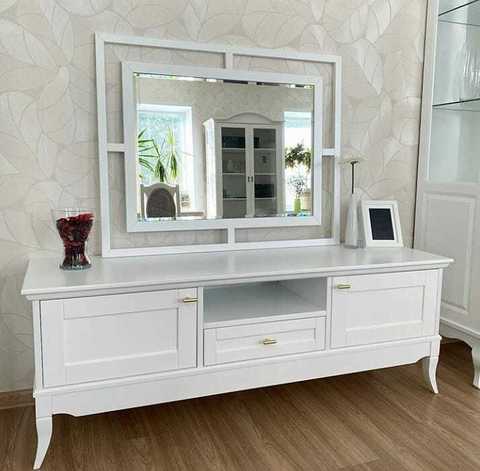 Тумба под ТВ Римини с дверками выполнена из бука+МДФ, в стиле прованс. Ручки металлические. Размер ниши : В 12,2 х Ш 45,8. Возможно изготовление в нестандартном размере, подробности уточняйте у менеджеров.