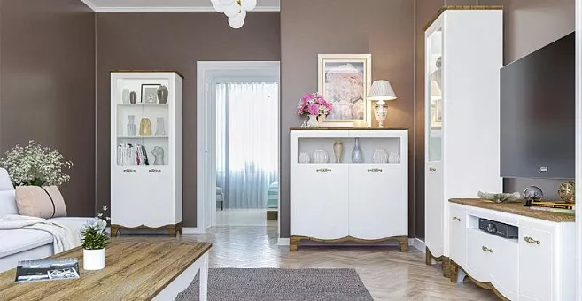 вам как спальню, так и гостиную. Чистый белый цвет в сочетании с благородной древесной текстурой мебели Тиффани идеально подойдет для интерьера квартиры либо загородного дома создавая гармоничную и уютную атмосферу.