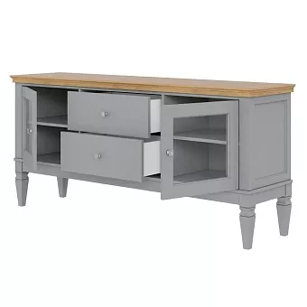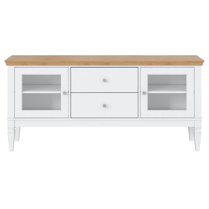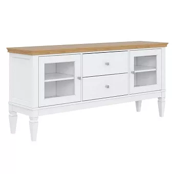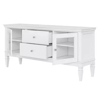 Предлагаем Вам привлекательную тумбу для ТВ «Ольса» 22 (1600) из массива сосны для гостиной или спальни. Тумба ТВ состоит из двух выдвижных ящиков и двух полок за стеклянными дверками.