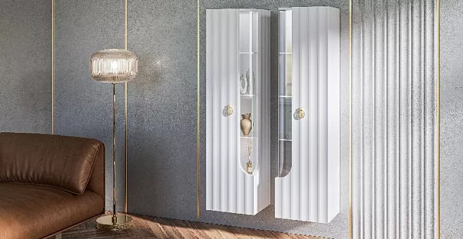 Дизайнерские резные ножки из дерева придают коллекции легкость, а инновационное матовое покрытие от итальянских производителей будто приглашает дотронуться до бархатистой волны фасада и ощутить тепло прикосновения.