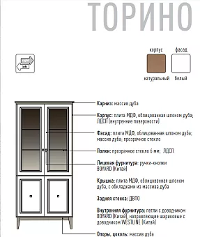 - Артикул Шкаф с витриной Торино ГМ 1491 правая