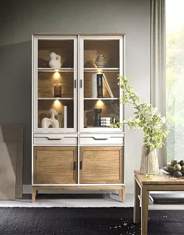 Серия мебели Гранада выполнена полностью из массива сосны. Современный стиль мебели идеально впишется в Ваш интерьер квартиры или загородного дома создавая уютную и стильную атмосферы. В коллекцию входит однодверные и двухдверные тумбы, шкафы для посуды с остеклением и без остекления. Корпуса, фасады и полки изготавливаются из массива сосны, задние стенки и днища ящиков из ДВП. На выбор два цветовых сочетания: «белый воск/антик 24» или «серый 7016/антик 24». Шкаф для посуды 222 Гранада с 4 дверцами и 2 ящиками изготовлен из массива сосны – прочного и долговечного натурального материала. Задняя стенка сделана из ДВП.