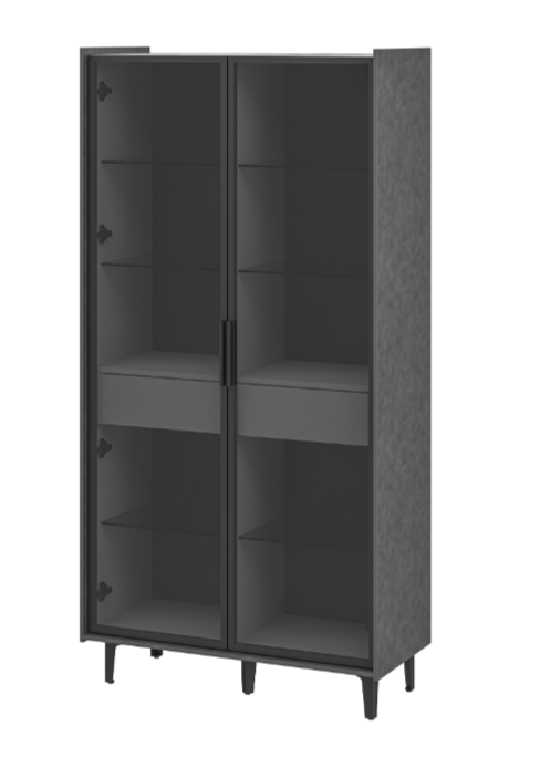 Витрина: стекло с тёмной тонировкой, алюминиевая рамка, профиль 20х20мм, цвет: черный брашированный.