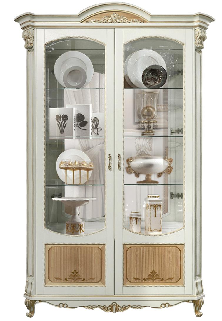 Шкаф с витриной "Альба 8" П 485.08-01 слоновая кость (с зол., с сер.)