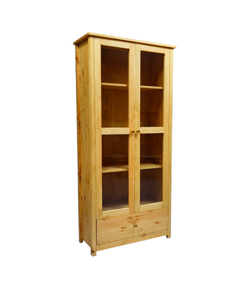 Витрина выполнена из массива сосны. Габариты представлены по выступающим частям. Поставляется в собранном виде. Имеет 3 несьёмные полки, 1 ящик, дверь со стеклом. Расстояние между полками 40см. Ящик на направляющих. Тон мебели может отличатся от фотографии на сайте.