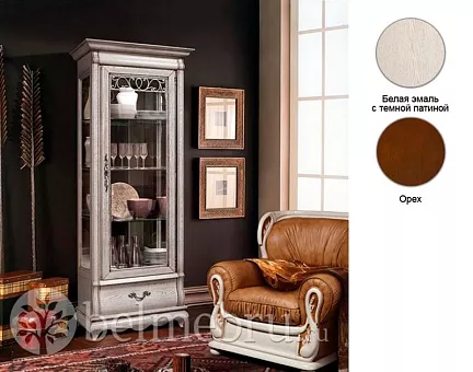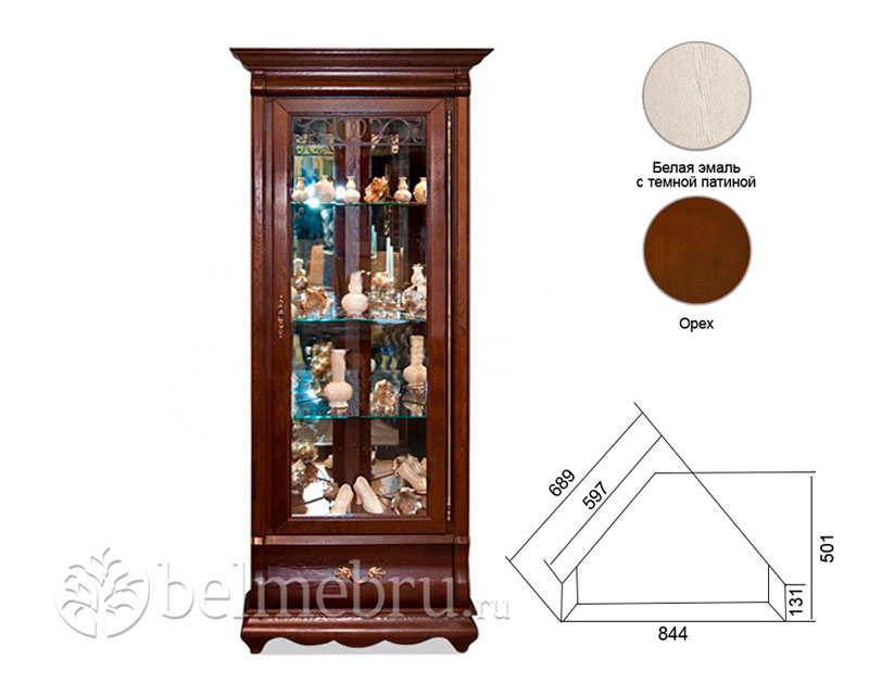 Отделка: варианты цвета — «орех» , «белая эмаль + патина тёмная», «венге+патина серебряная», лак – на водной основе.