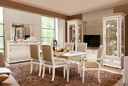 Изогнутые линии, искусно вырезанное кружево из дерева, налёт старины, подсветка, боль-шой модульный ряд, придают набору изысканность, аристократизм.