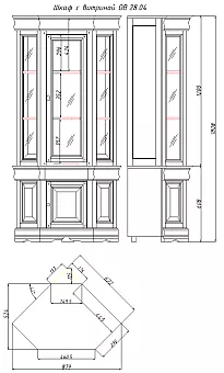 Шкаф-витрина "Луи Филипп ОВ 28.04" угловой