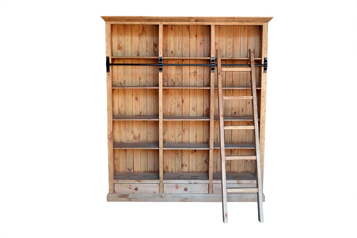 Библиотека ELBIB 3Т выполнена из массива сосны, обладает легким ароматом смолы. Поставляется в собранном виде. Вес изделия 120 кг. Три ящика. Комплектуется деревянными ручками "Грибок" (3шт.). Лестница и штанга с креплениями в комплекте. Тон мебели может отличатся от фотографии на сайте. При желании можно приобрести кованные металлические ручки в форме кольца или груши.