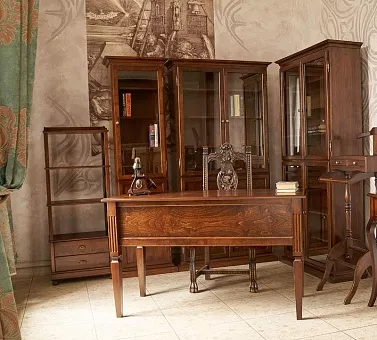 Мебель фабрики Tadorna Furniture, выполненная из массива березы в цвете: орех, темный орех. В материале массив берёзы/МДФ в цвете: слоновая кость, белый, с золотой и серебряной патиной. Также есть шкафы, которые могут компоноваться в "стенки". Варианты компоновок могут быть выполнены по индивидуальному заказу. Модульные шкафы между собой соединяются стяжками, а цоколь и корона крепятся на саморезы. Цоколи оснащены специальными ножками для регулирования по высоте. Мебель представляет собой превосходное сочетание классического стиля и современного качества. Идеально подходит для гостиной, кабинета и домашней библиотеки. Фотографии на сайте могут не передавать точный тон мебели, уточняйте у наших менеджеров.