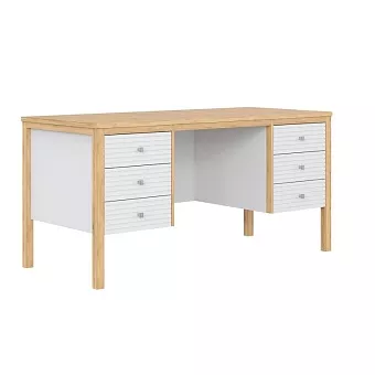Простой и удобный письменный стол «Вояж» 06 РЯ из массива сосны в экологичном стиле станет украшением вашего кабинета. Его можно поставить как в современном офисе, так и в небольшой квартире. Оснащен шестью выдвижными ящиками.