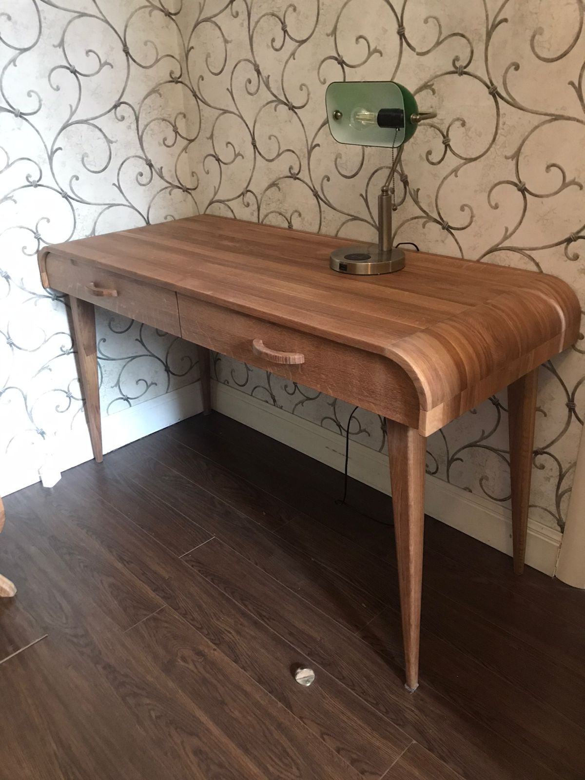 Два выдвижных ящика Производство: Россия Материал: массив дуба Отделка: морилка, масло Форма поставки: в собранном* виде Вес (кг): 40,00 Объем (м.куб.): 0,17 Количество пакетов: 1 Габариты (ширина*глубина*высота):1400*780*585 Коллекция мебели Aachen (Аахен) из цельноламельного массива дуба для спальни и гостиной. Стиль авангард. Двенадцать предметов. Особенность дизайна данной коллекции – радиусные элементы R90 мм в угловых соединениях и ручках.На мебель устанавливаются петли и шариковые направляющие с плавной доводкой. Есть возможность изготовления по индивидуальным размерам заказчика.