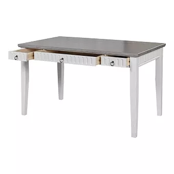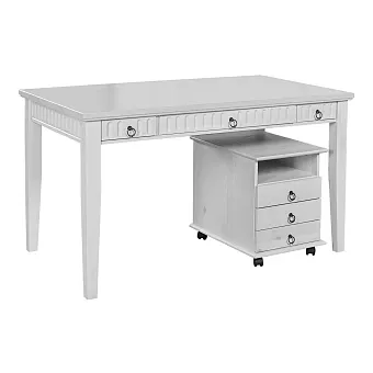 Белорусский простой и элегантный письменный стол “Хельсинки 03” станет украшением любой спальни или кабинета. Он выполнен из натурального массива сосны и оснащен тремя выдвижными ящиками. Имеет 4 цветовых решения: антик, белый, серый, колониал. Может быть дополнен мобильной тумбой, которая отлично под ним разместится.