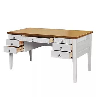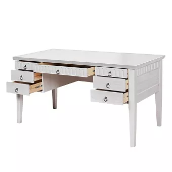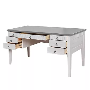 Хороший белорусский письменный стол – мечта любого человека, вынужденного проводить много времени за решением деловых и творческих задач. Эта модель из коллекции «Хельсинки» 07 покорит вас благородным внешним видом и практичной конструкцией. С каждой стороны находится по три выдвижных ящика, а прямо под столешницей еще один, пошире.