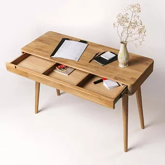 Письменный стол легко впишется в любое пространство, будь то небольшой офис, кабинет или гостиная в скандинавском стиле. Используется 100% массив дуба. Покрытие интерьерными маслами от компании Хенкель. 100% ЭКО отделка, масла не выделяют никаких токсичных частиц. Гарантия защиты и долговечности древесины, сохранение ее текстуры, внешнего вида и естественности. Каркас-массив дуб, фасад- массив дуб. Задняя стенка, дно ящиков - фанера, облиц. шпоном дуб.
