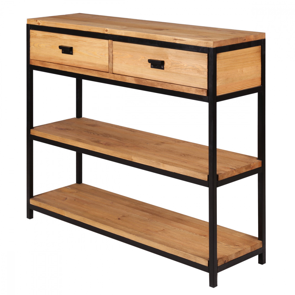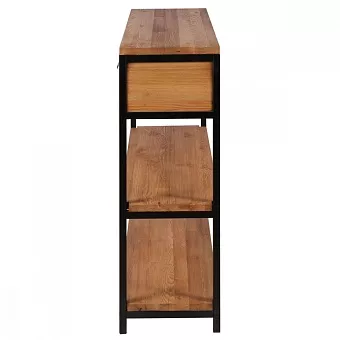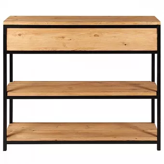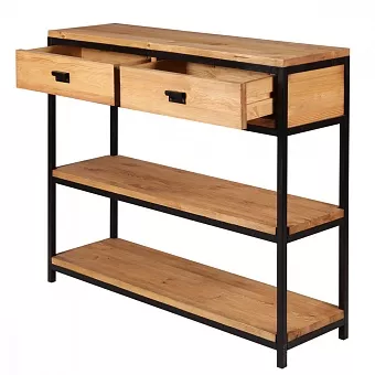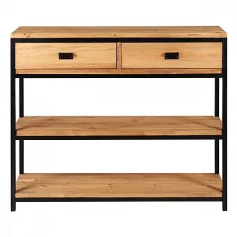 Все элементы Серии Лофт выполнены из массива сосны с металлическим каркасом. Поставляются в собранном виде, кроме кроватей. Консоль имеет 2 выдвижных ящика на шариковых направляющих, толщина столешницы 2 см. Толщина полок 2 см. Тон мебели может отличатся от фотографии на сайте.