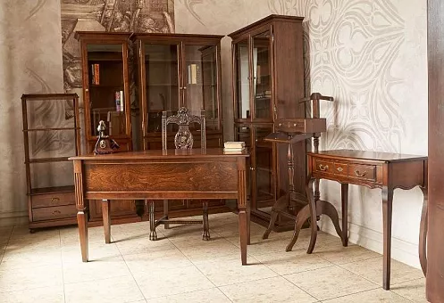 Мебель фабрики Tadorna Furniture, выполненная из массива березы в цвете: орех, темный орех. В материале массив берёзы/МДФ в цвете: слоновая кость, белый, с золотой и серебряной патиной. Также есть шкафы, которые могут компоноваться в "стенки". Варианты компоновок могут быть выполнены по индивидуальному заказу. Модульные шкафы между собой соединяются стяжками, а цоколь и корона крепятся на саморезы. Цоколи оснащены специальными ножками для регулирования по высоте. Мебель представляет собой превосходное сочетание классического стиля и современного качества. Идеально подходит для гостиной, кабинета и домашней библиотеки. Фотографии на сайте могут не передавать точный тон мебели, уточняйте у наших менеджеров.