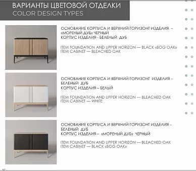 В каталоге представлена коллекция корпусной мебели ICON’S. Отличительной чертой и особенностью коллекции можно считать преобладание светлых тонов, натуральность материалов, лаконичность и простоту. Корпус каждого изделия, верхняя крышка, полки и фасады изготовлены из МДФ и шпона дуба. Ящики выполнены из фанеры, основание каждого изделия производится из массива дуба. При создании коллекции ICON’S нами использовались такие лакокрасочные покрытия как эмаль, шелковисто-матовый лак и патина - Sayerlack (Италия). Для создания некоторых изделий применялся способ отделки дерева с помощью морения, в результате чего и был получен эффект морёного дуба в черном цвете. Вся фурнитура (петли, направляющие) с доводчиком бесшумного открывания/ закрывания от европейского производителя Hettich (Германия). Фасады оснащены интегрированными ручками. Простые линии, натуральные материалы и современный дизайн – это то, что сочетает в себе наша коллекция ICON’S. Элитная белорусская мебель от лучшего производителя страны.