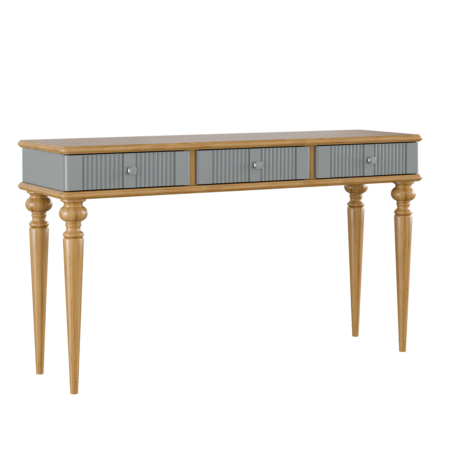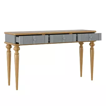 Удобная и широкая консоль, очень проста, но при этом функциональна. Отлично впишется как в кабинет, так и в гостиную комнату. Консоль оснащена тремя выдвижными ящиками с направляющими с доводчиками. Фотографии могут не передавать точный цвет изделия.