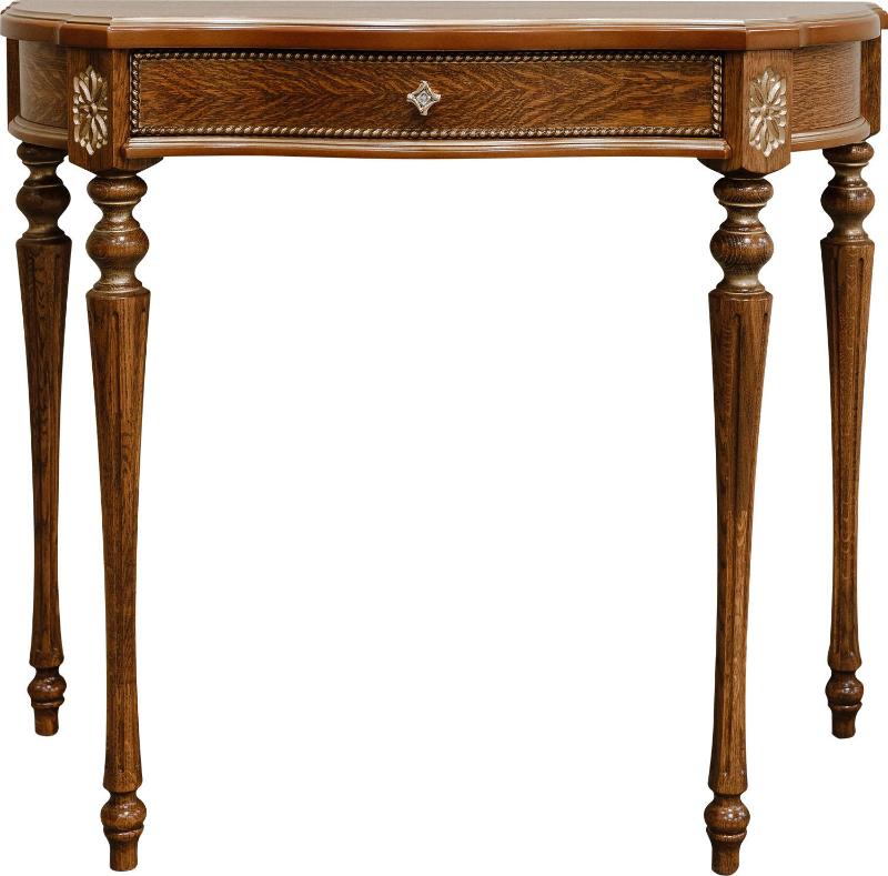 Стол-консоль П 613.09 палисандр (с зол., с сер.) фабрики Пинскдрев в классическом стиле характерна массивность, основательность и пышность форм. Альба является классическим примером мебели из массива дуба. Она включает в себя мебель для