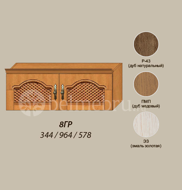 Коллекция производится в цветах "Медовый дуб" (ПМП), "Натуральный дуб" (Р-43) и "Эмаль золотая" (ЭЗ)*