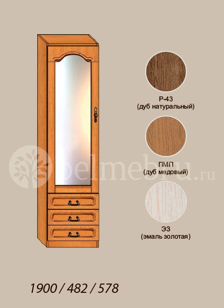 Коллекция производится в цветах "Медовый дуб" (ПМП), "Натуральный дуб" (Р-43) и "Эмаль золотая" (ЭЗ)*