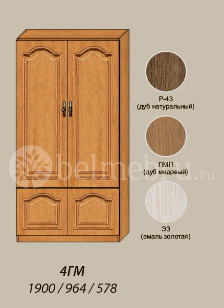 Коллекция производится в цветах "Медовый дуб" (ПМП), "Натуральный дуб" (Р-43) и "Эмаль золотая" (ЭЗ)*