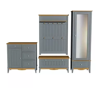 Коллекция включает предметы мебели для всех основных помещений дома: кровати, бельевые шкафы, туалетные столы, посудные шкафы и тумбы и тд.