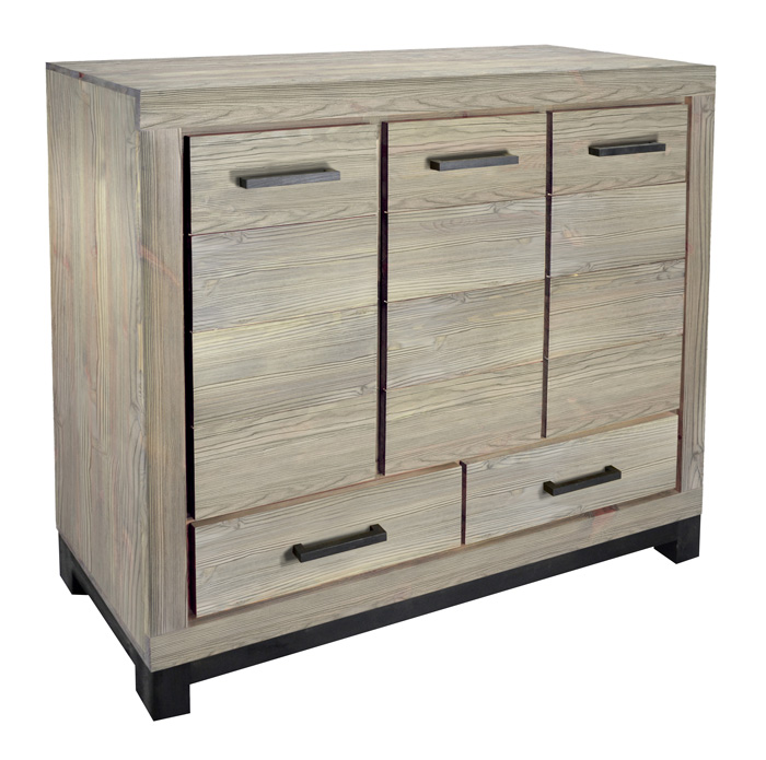 Шкаф ТЕМРО BLACK КМШ-321 выполнен из 100 % массива сосны в стиле ЛОФТ. В верхней части изделия расположены три двери, за которыми спрятаны полки, снизу имеются два вместительных выдвижных ящика. Большая площадь фасада из массива придают изделию солидный вид, а вместительность позволит хозяйке расположить в нем множество вещей.