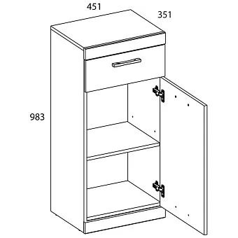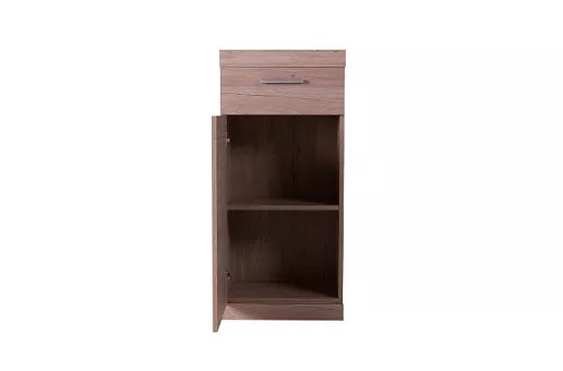Тумба 1D1SH OSKAR в комбинации с другими модулями коллекции организует разнообразные комплектации прихожих для помещения любой площади. Тумба 1D1SH OSKAR имеет прямую конструкцию, H – high (высокий элемент в сравнение с тумбой 1D1S). Конструкция элемента представляет собой один выдвижной ящик (1S), одно отделение с полкой из ЛДСП за глухой дверью (1D). Дверь распашная, крепится на петли к боковому корпусу изделия.