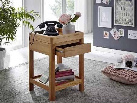 Этот предмет мебели открытая тумба КМ-0069 40х60 хорошо впишется в современный интерьер спальни или гостиной. Обладает классической формой, выдвижным ящиком под верхней панелью и открытой полкой внизу. Благодаря наличию бортиков исключено случайное смахивание нужных предметов с поверхности тумбочки.