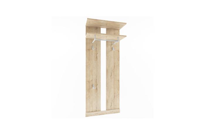 Вешалка 45 OSKAR - настенная. Конструкция элемента представляет собой две вертикальные панели из ЛДСП, которые вплотную соединены между собой планками из ЛДСП, открытую нишу, под нишей – вешалка. На панели установлены крючки в два ряда для размещения верхней одежды.