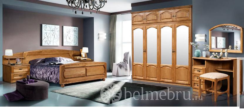 Спальня может быть выполнена фасадные части из массива дуба. внутренности из комбинированных материалов.