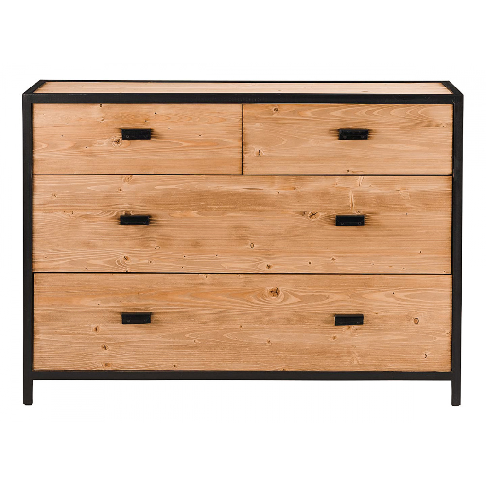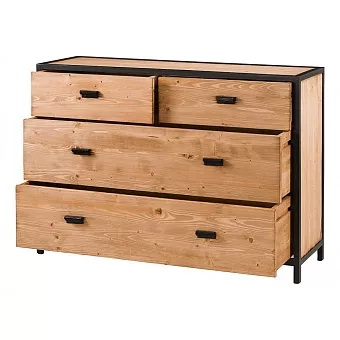 Все элементы Серии Лофт выполнены из массива сосны с металлическим каркасом. Поставляются в собранном виде, кроме кроватей. Комод имеет 4 выдвижных ящика. Вес изделия 81 кг. Тон мебели может отличатся от фотографии на сайте.