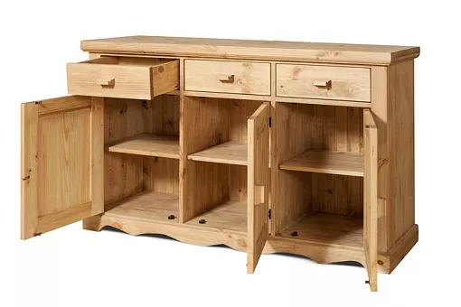 Серия PIN MAGIC выполнена полностью из массива сосны, обладает легким ароматом смолы. По цвету, материала и текстуре совпадает с сериями Саларис, Прованс старения, Калипсо, а так же с кухнями Кухня Волшебная сосна, Кухня Шампань. Поставляется в сборе.4 дверки, 3 ящика. За каждой дверкой по полке.. Вес изделия 77 кг. Тон мебели может отличатся от фотографии на сайте. Ручки как изображено на картинке.