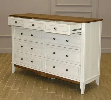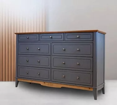 Коллекция включает предметы мебели для всех основных помещений дома: кровати, бельевые шкафы, туалетные столы, посудные шкафы и тумбы и тд.