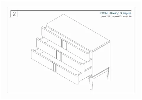 - Артикул Комод 3 ящика ICONS широкий Белый