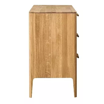Серия Атланта выполнена в скандинавском стиле, полностью из массива дуба. Поступает в собранном виде, кроме кроватей. Каркас-массив дуб, фасад- массив дуб. Задняя стенка комодов и шкафов, дно ящиков - фанера, облицованная шпоном дуба. Направляющие и петли с доводчиками. Вес изделия 58,6 кг. Фотографии на сайте могут не передавать точный тон мебели, узнавайте у менеджеров.