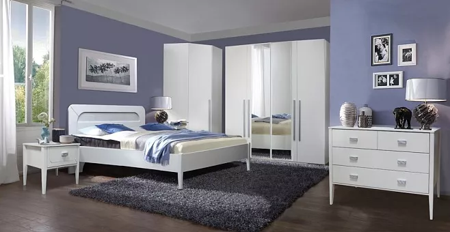 Фасад набора мебели, крышки комода и тумбы прикроватной, выполнены из плит МДФ, каркас из плит ДСП.