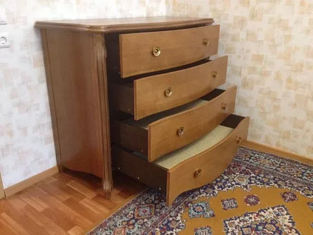 Фурнитура: Используются скрытые направляющие TANDEM полного выдвижения и бесшумного закрывания производства фирмы «Blum» (Австрия), лицевая фурнитура – ручка-кнопка производства «GIUSTI» (Италия); петля шарнирная с доводчиком и стяжки — фирмы «Hettich» Германия.